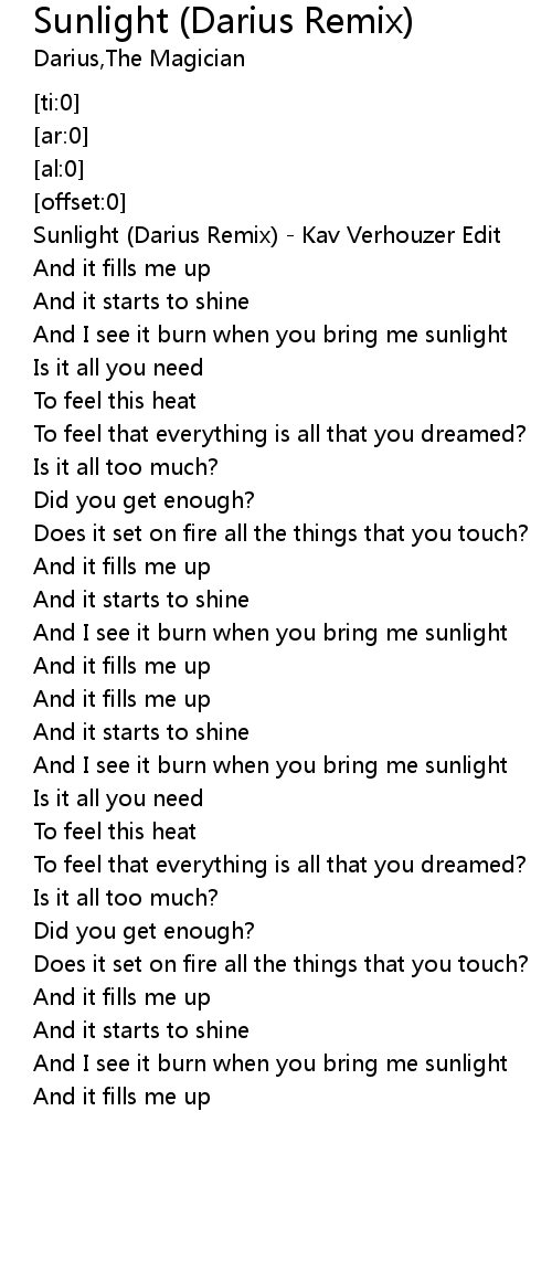 Sunlight (Darius Remix) - Kav Verhouzer Edit |