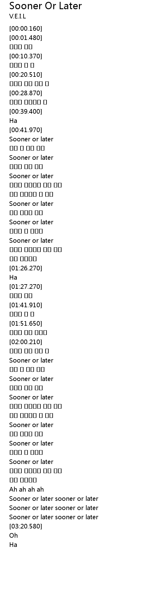 | [03:06.410] | Sooner or later sooner or later |