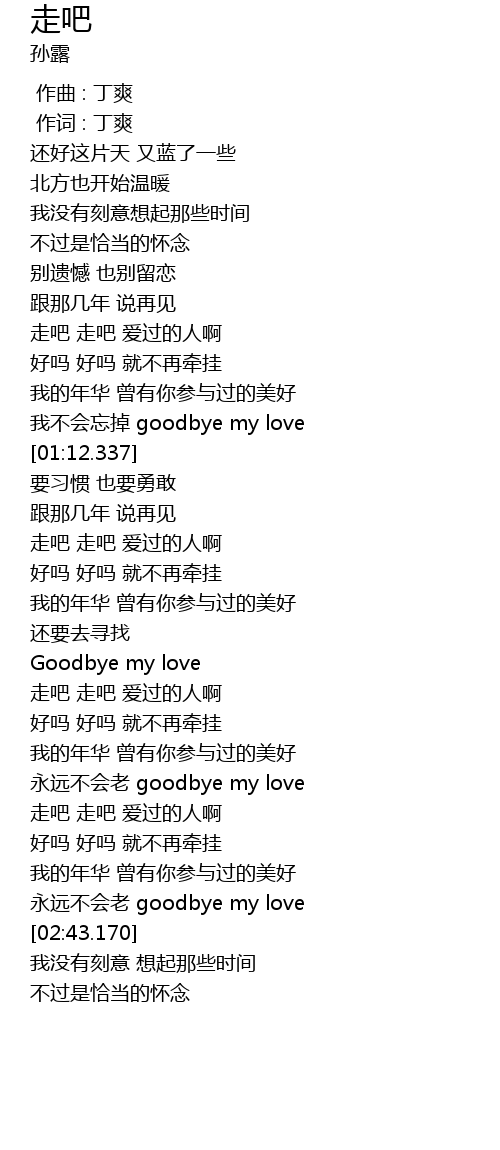 | [01:42.343] | 走吧 走吧 爱过的人啊 |