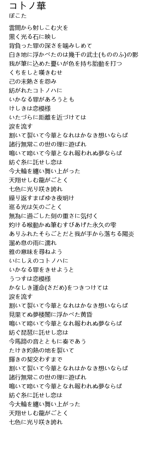 | [00:57.72] | 割いて裂いて今華となれはかなき想いならば |
