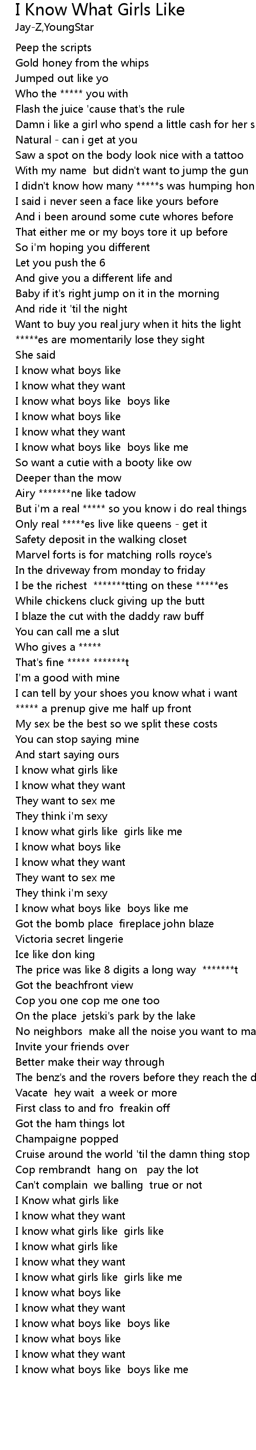 | [03:09.43] | I know what girls like girls like |