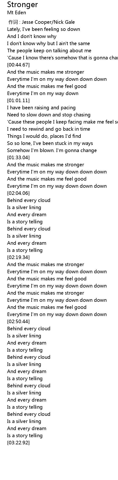 | [00:15.22] | Lately, I' ve been feeling so down |
