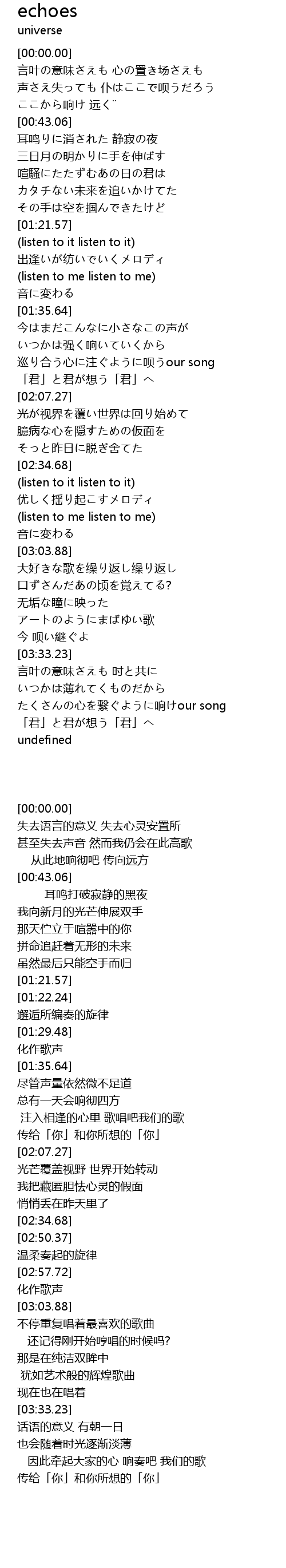 | [01:51.84] | 巡り合う心に注ぐように呗うour song |