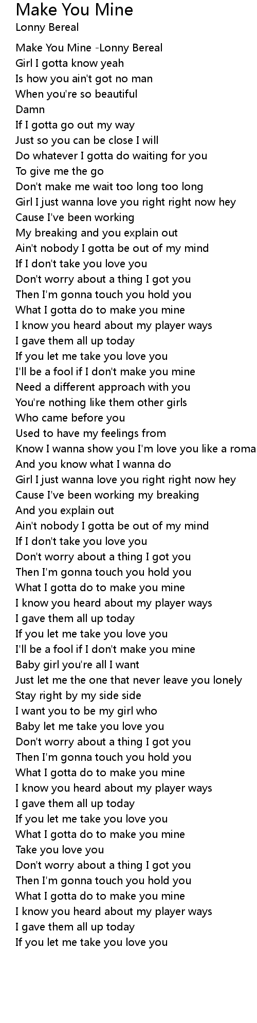 Make You Mine -Lonny Bereal |