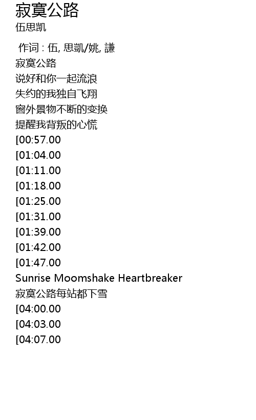 | [00:00.00] | 寂寞公路 |