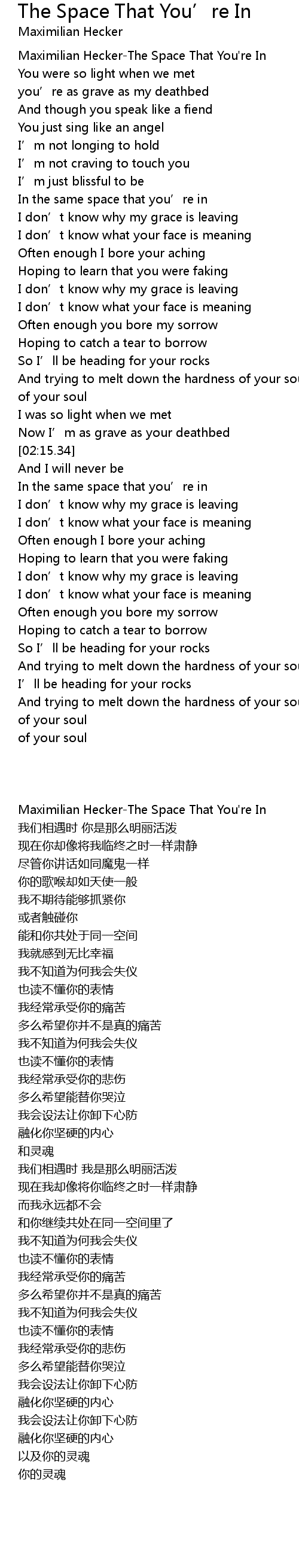 | [00:01.53] | Maximilian Hecker-The Space That You're In |