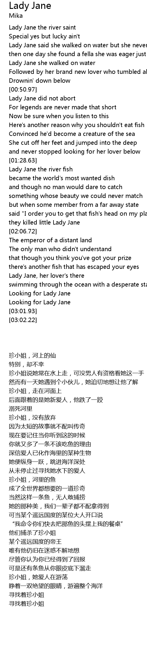 Lady Jane she walked on water |