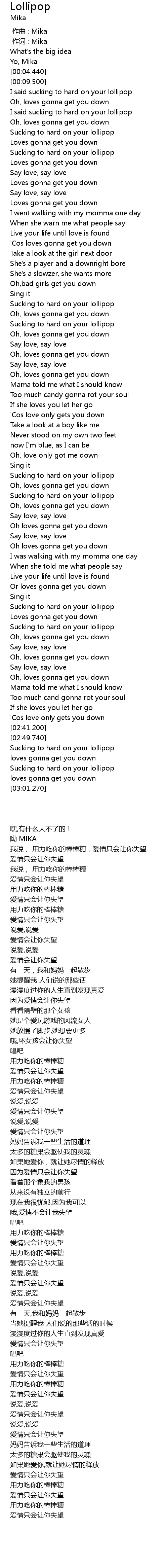 | [00:00.283] | 作词 : Mika |