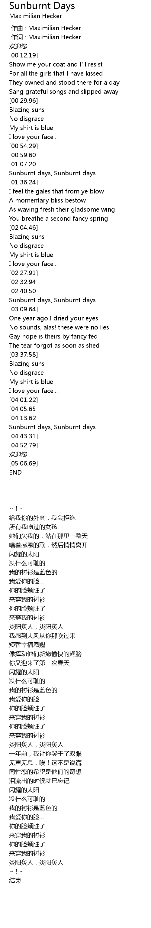| [04:34.74] | Sunburnt days, Sunburnt days |