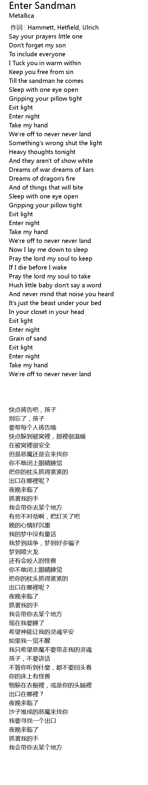 | [00:00.00] | 作词 : Hammett, Hetfield, Ulrich |