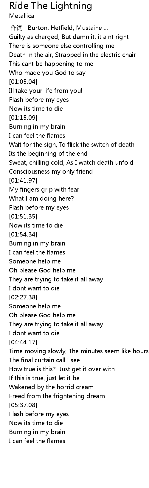 | [00:55.71] | Death in the air, Strapped in the electric chair |