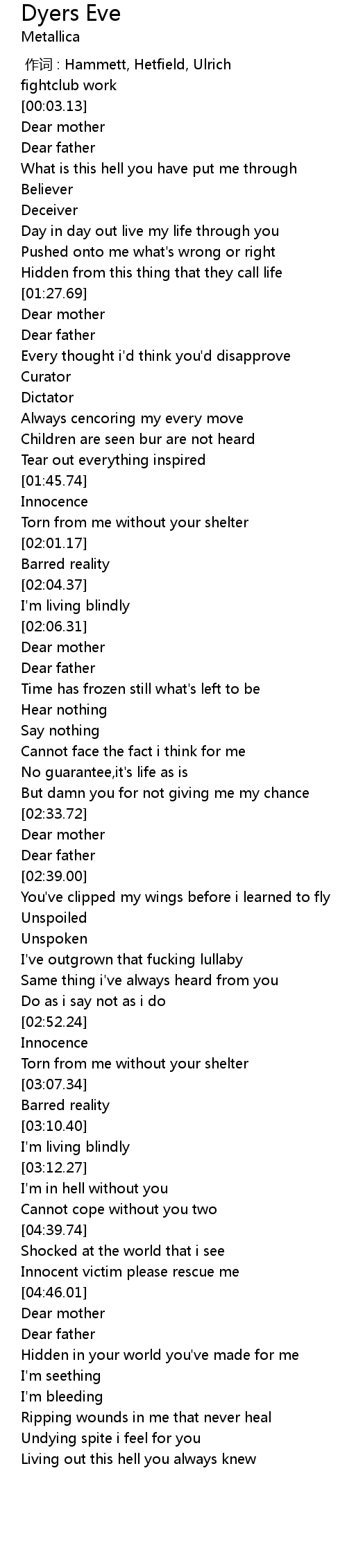 | [00:00.00] | zuo ci : Hammett, Hetfield, Ulrich |