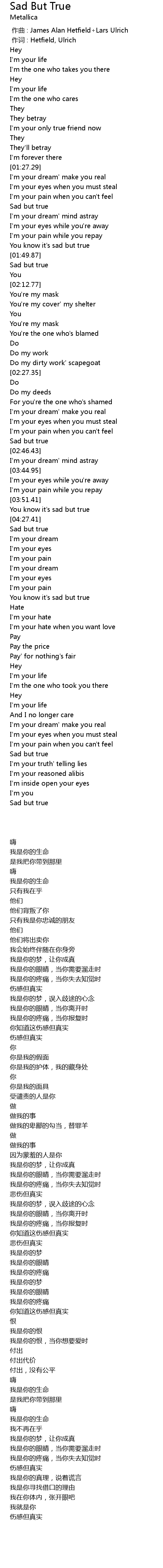| [00:01.00] | 作词 : Hetfield, Ulrich |