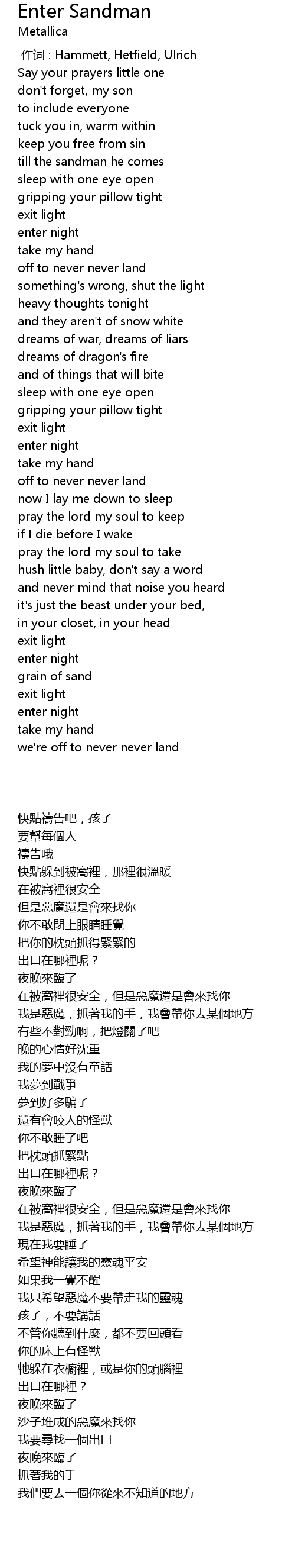 | [00:00.00] | 作词 : Hammett, Hetfield, Ulrich |