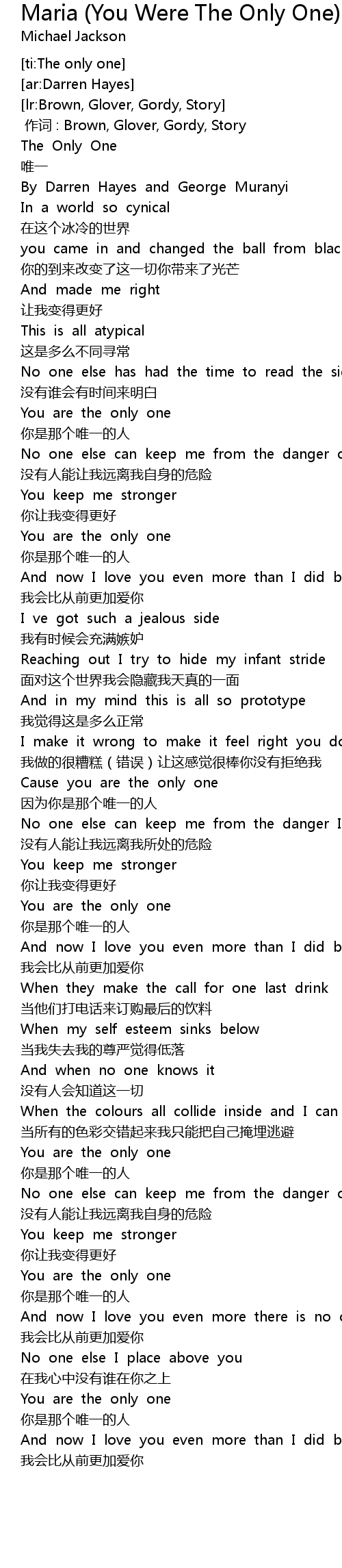 | [01:51.804] | yīn wèi nǐ shì nà gè wéi yī de rén |