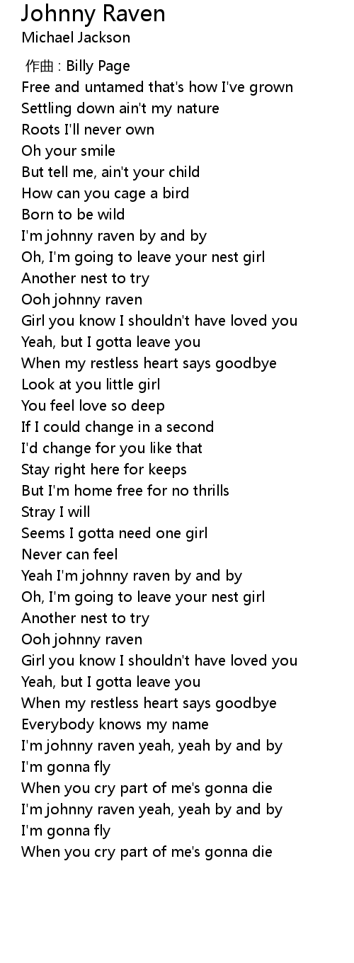 | [02:30.42] | I' m johnny raven yeah, yeah by and by |