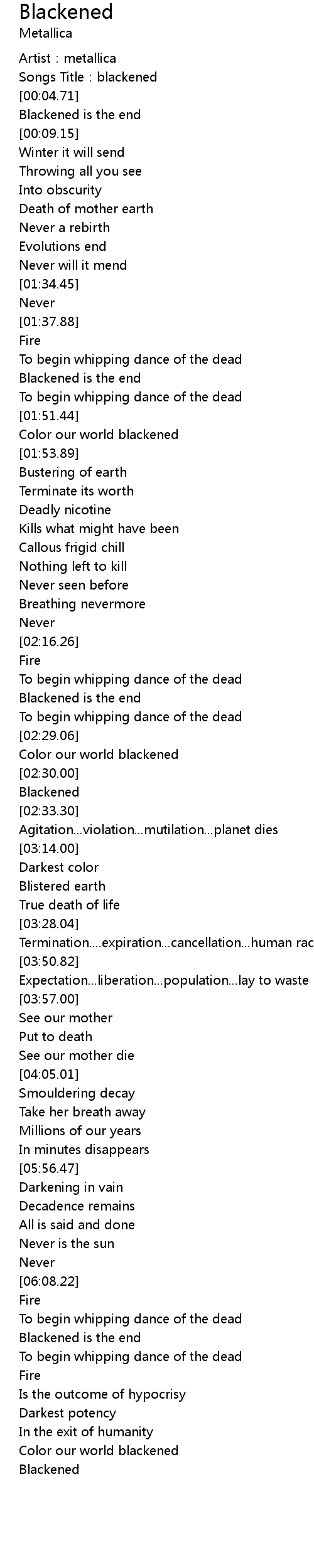 | [03:07.09] | Agitation...violation...mutilation...planet dies |