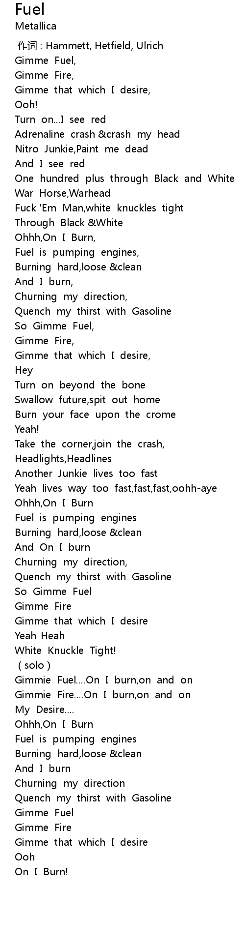 | [00:00.00] | Gimme Fuel, |