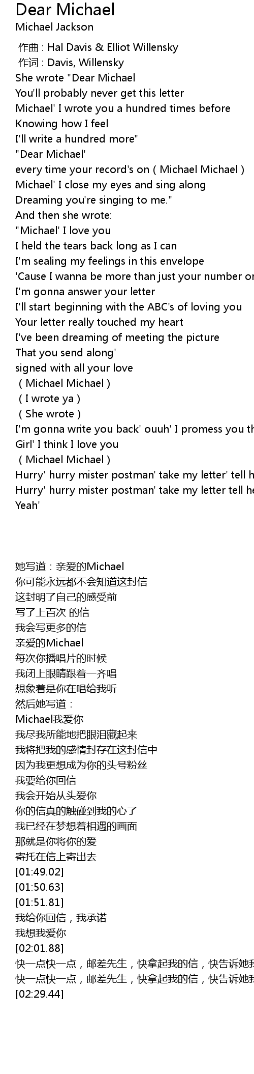 | [00:11.06] | Michael' I wrote you a hundred times before |