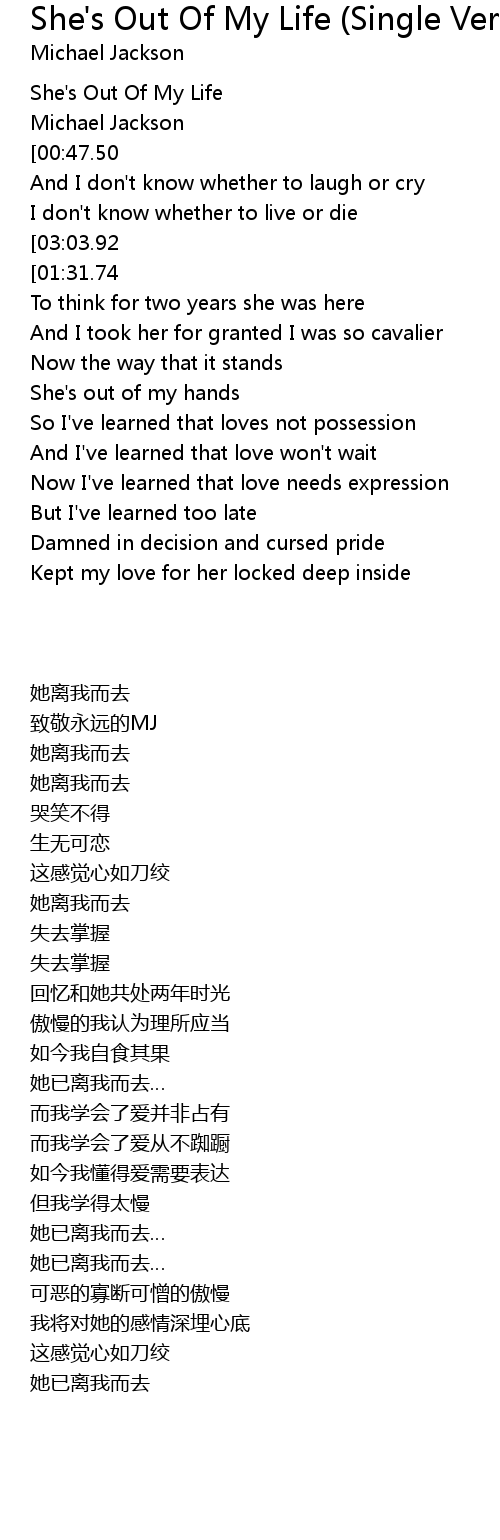 She's Out Of My Life |