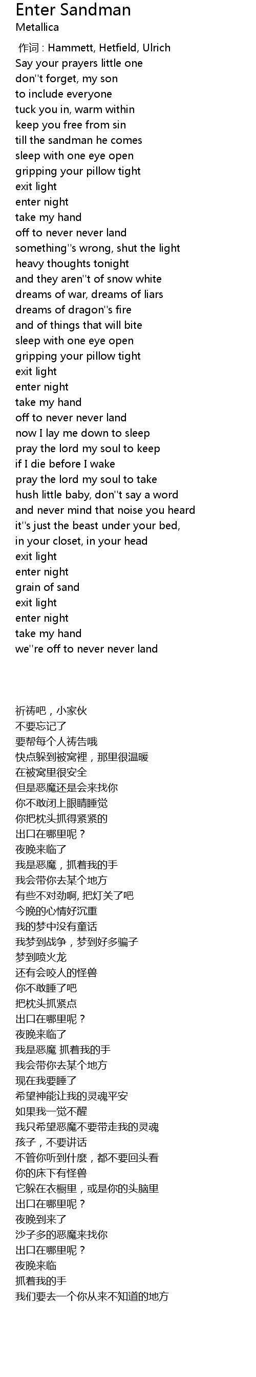 | [00:00.00] | 作词 : Hammett, Hetfield, Ulrich |