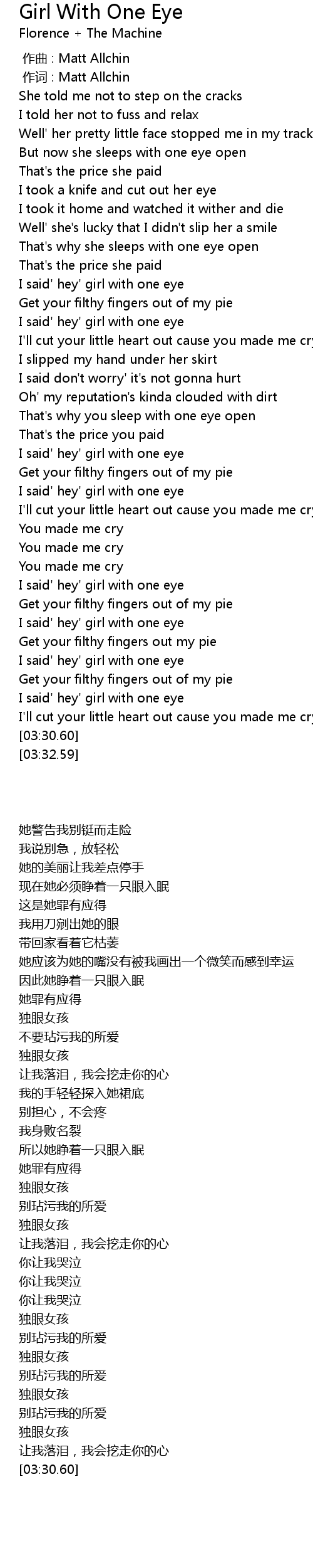 | [02:47.22] | I said' hey' girl with one eye |