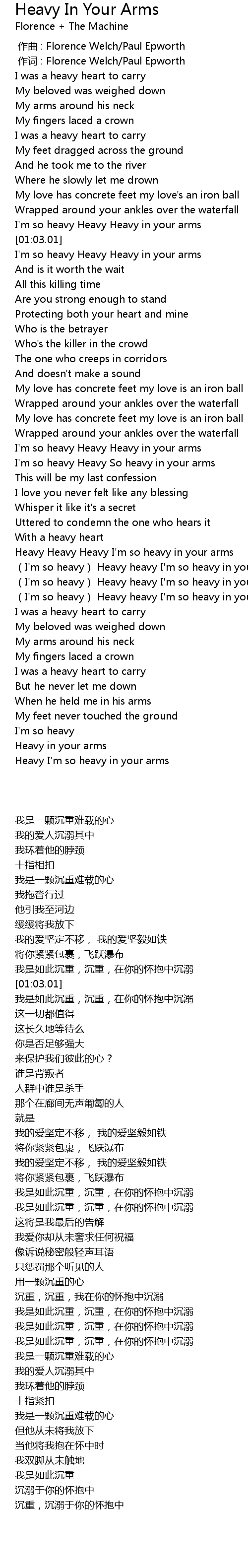 | [02:21.45] | I' m so heavy Heavy So heavy in your arms |