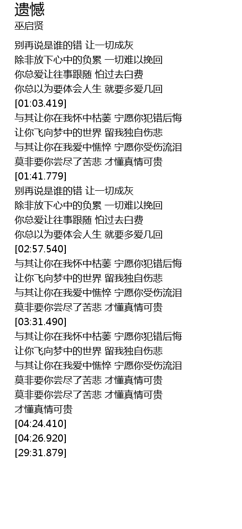 | [03:31.970] | yu qi rang ni zai wo huai zhong ku wei ning yuan ni fan cuo hou hui |