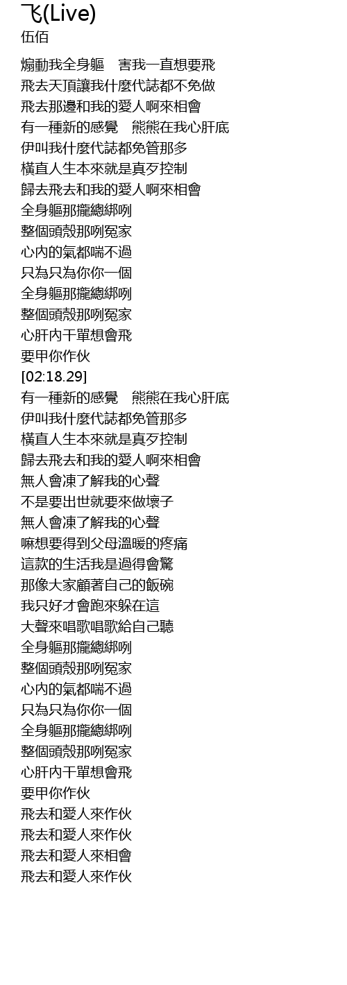 | [01:40.10] | 飛去那邊和我的愛人啊來相會 |