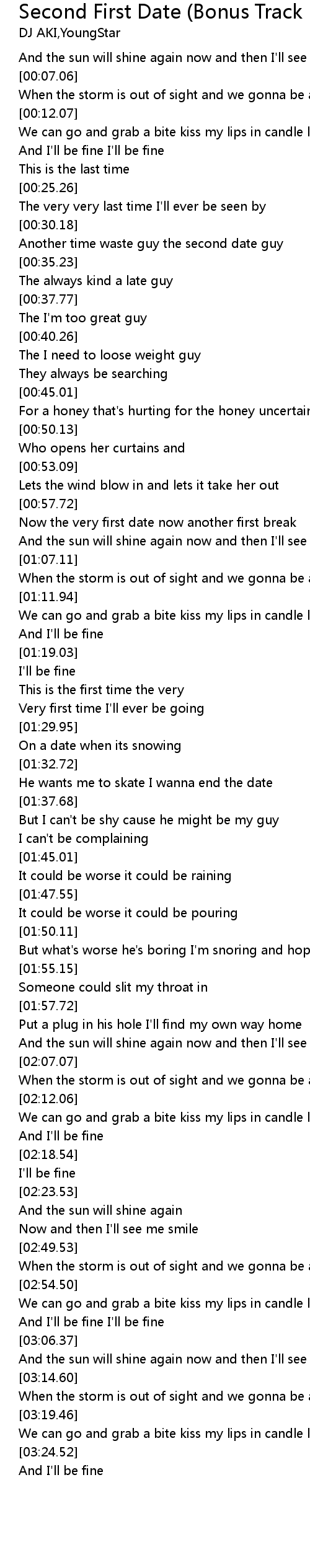 | [03:20.31] | We can go and grab a bite kiss my lips in candle light |