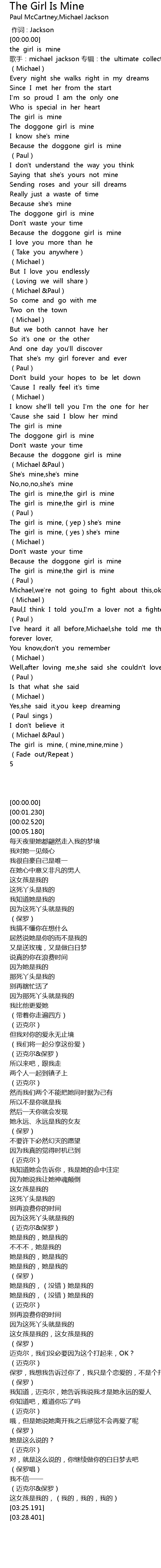| [02:35.866] | The girl is mine, yes she' s mine |