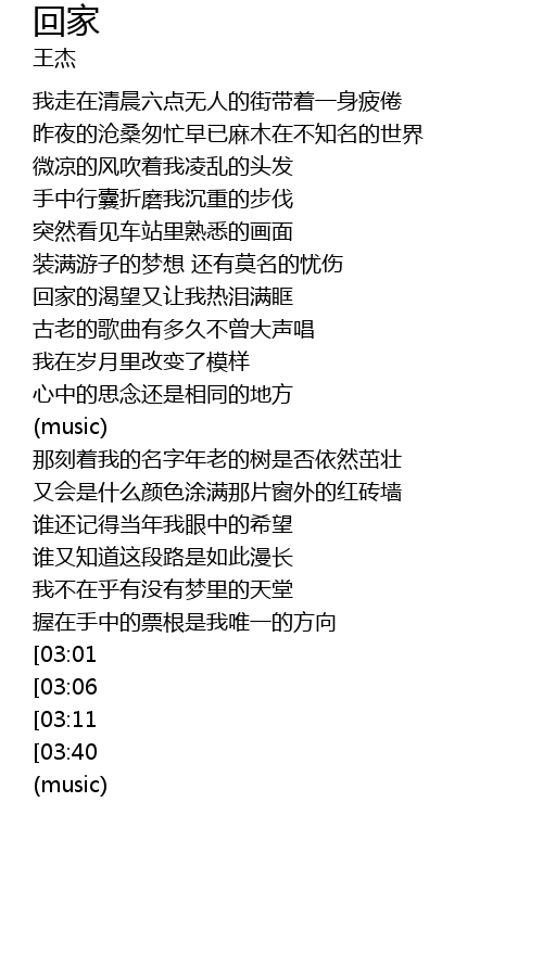 | [01:37] | 回家的渴望又让我热泪满眶 |