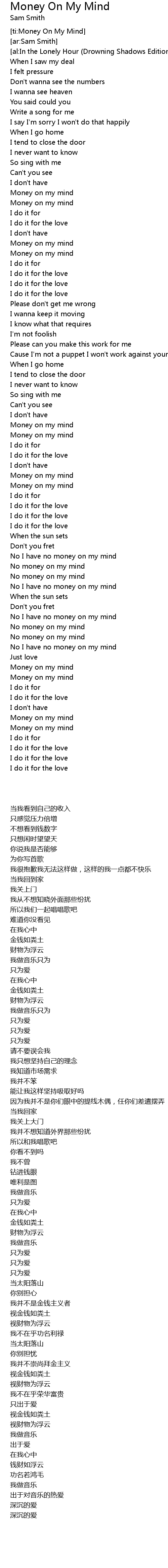 [ti:Money On My Mind] |