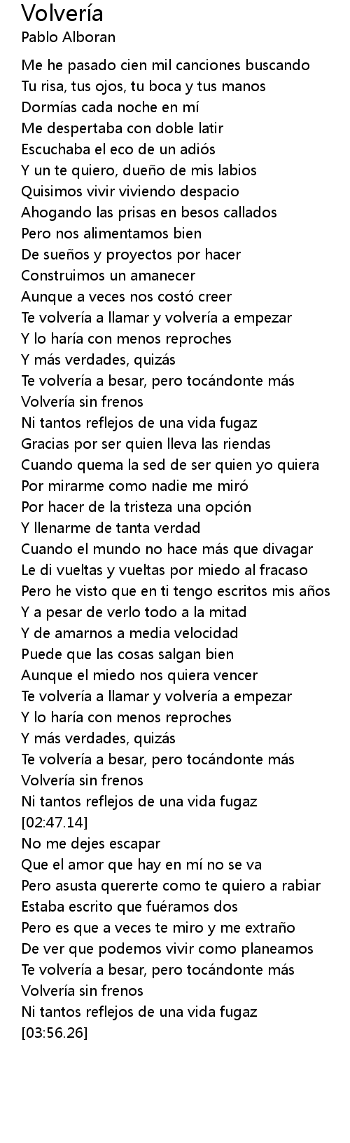 | [02:19.80] | Te volverí a a llamar y volverí a a empezar |