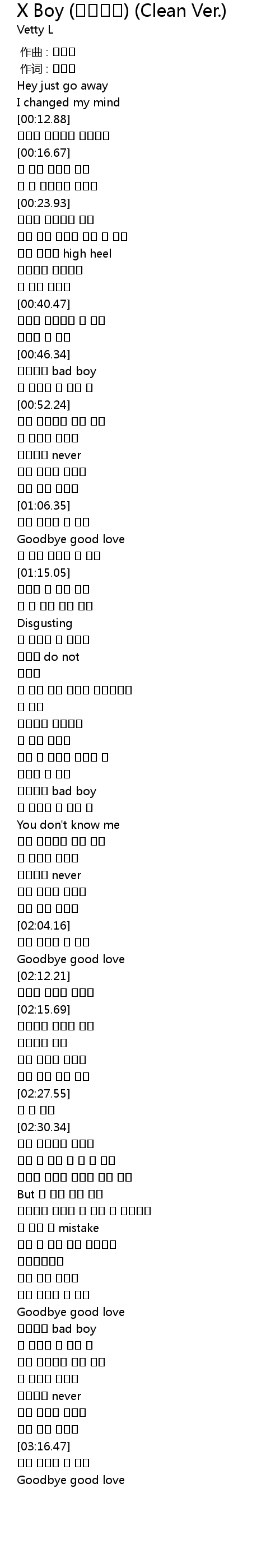 | [00:47.18] | 잘살지마 bad boy |