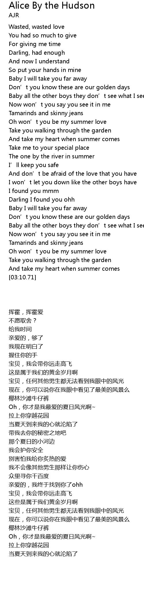 | [01:59.38] | The one by the river in summer |