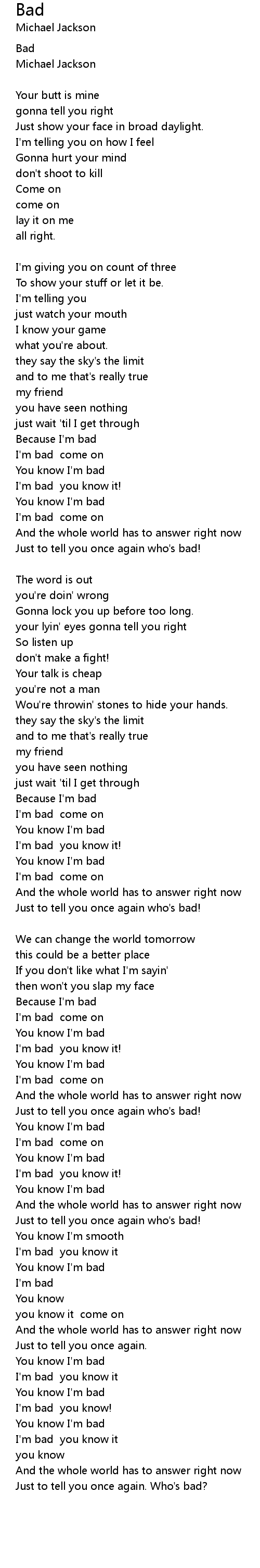 I'm bad |