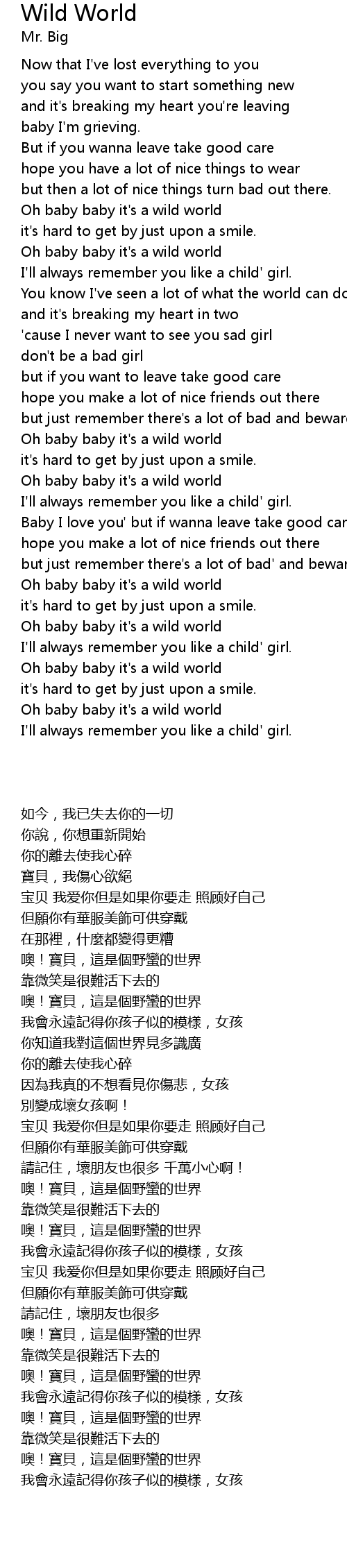 Oh baby baby it's a wild world |