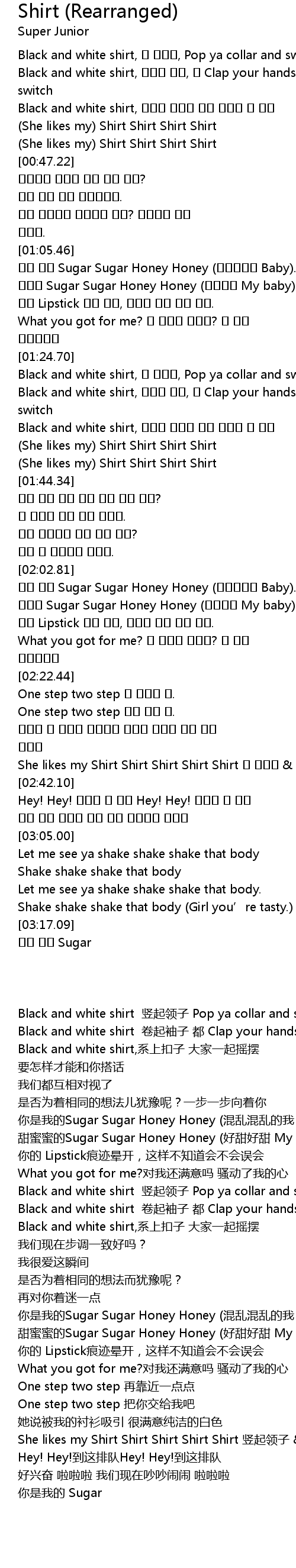 | [00:42.38] | (She likes my) Shirt Shirt Shirt Shirt |