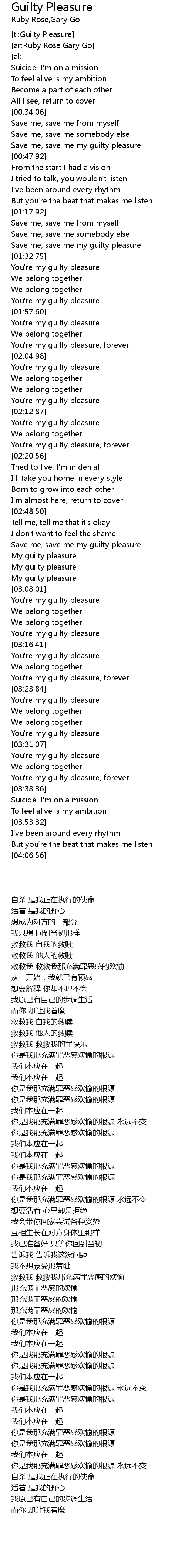 | [03:31.33] | You're my guilty pleasure |