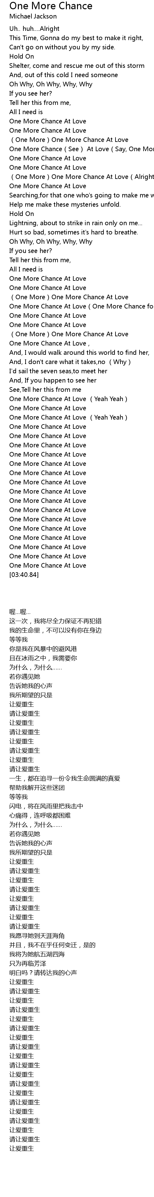 | [01:03.16] | One More Chance See At Love Say, One More |