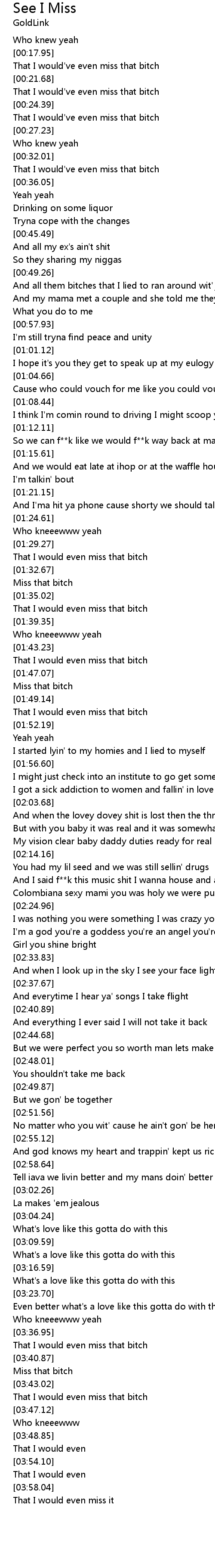 That I would've even miss that bitch |