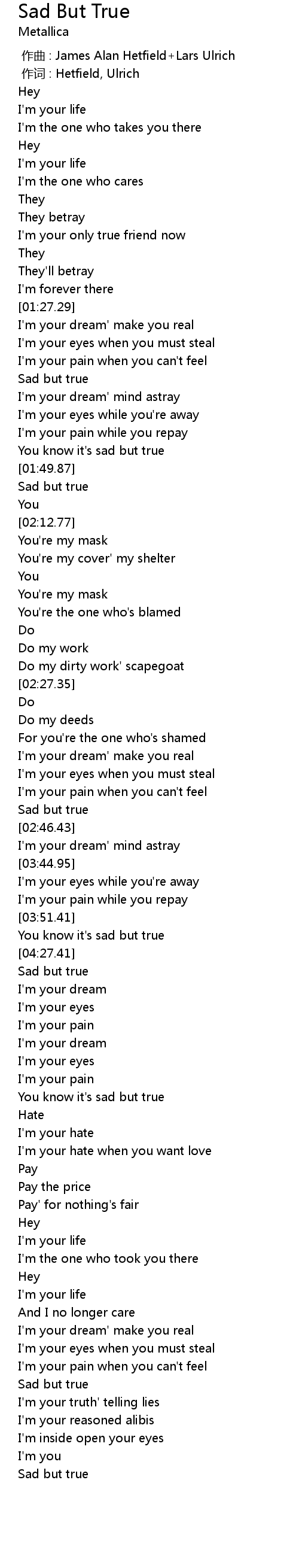 | [00:01.00] | 作词 : Hetfield, Ulrich |