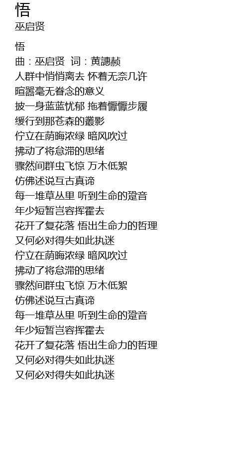| [00:08.88] | 曲:巫启贤 词:黄譓赪 |