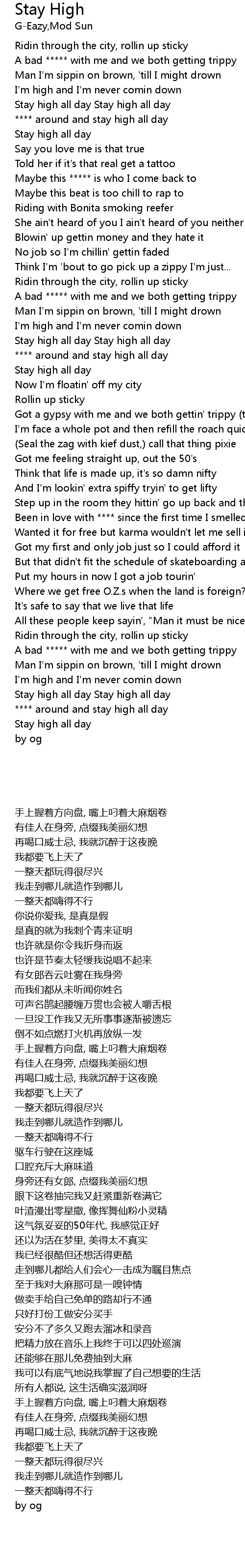 | [02:19.97] | Been in love with **** since the first time I smelled it |