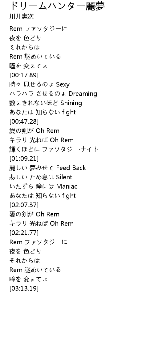 | [00:57.91] | キラリ 光ねば Oh Rem |