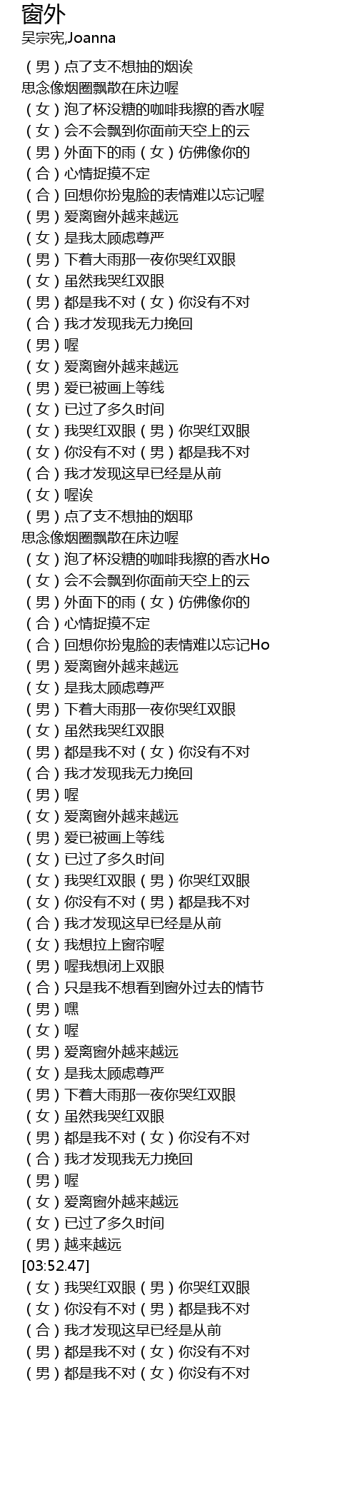 | [03:47.51] | (女)爱离窗外越来越远 |