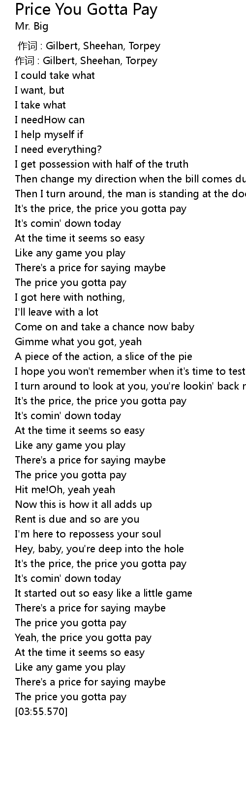 | [02:57.420] | It' s the price, the price you gotta pay |
