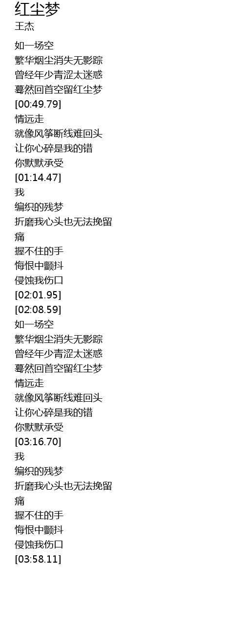 | [00:43.60] | 蓦然回首空留红尘梦 |
