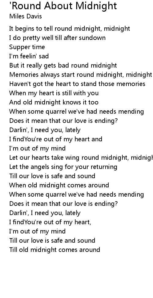 It begins to tell round midnight, midnight |